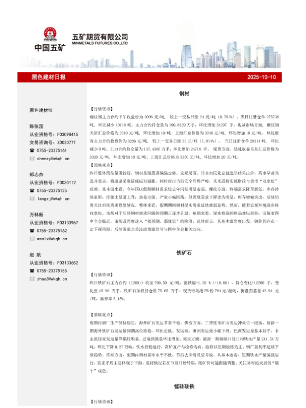 【五矿期货】【202510】黑色建材日报-11页 证券期货研究报告