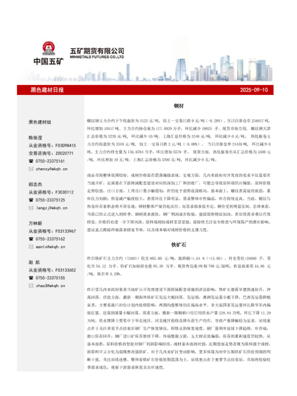 【五矿期货】【202509】黑色建材日报-11页 证券期货研究报告