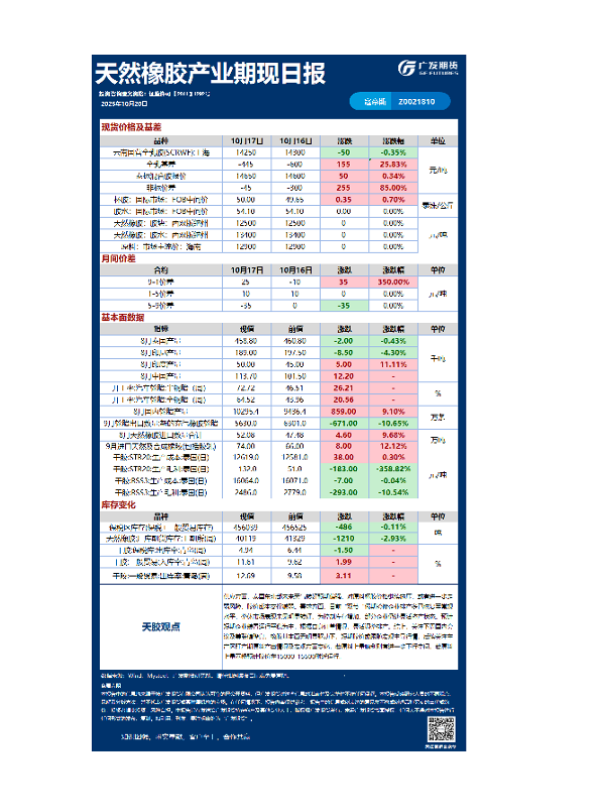 【广发期货】【202510】天然橡胶产业期现日报, 玻璃纯碱期现日报, 原木期货日报, 工业硅产业期现日报, 光伏产业期现日报-5页 证券期货研究报告