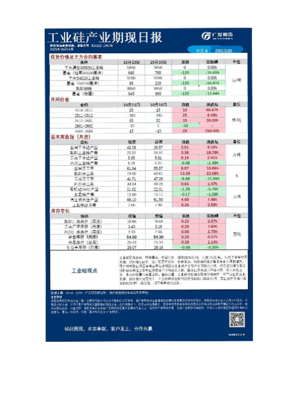 【广发期货】【202510】工业硅产业期现日报, 光伏产业期现日报, 天然橡胶产业期现日报, 玻璃纯碱期现日报, 原木期货日报-5页 证券期货研究报告