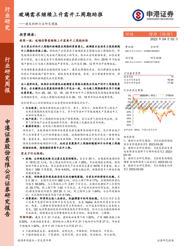 【申港证券】【20230402】玻璃需求继续上升需开工周期助推-16页 行业研究