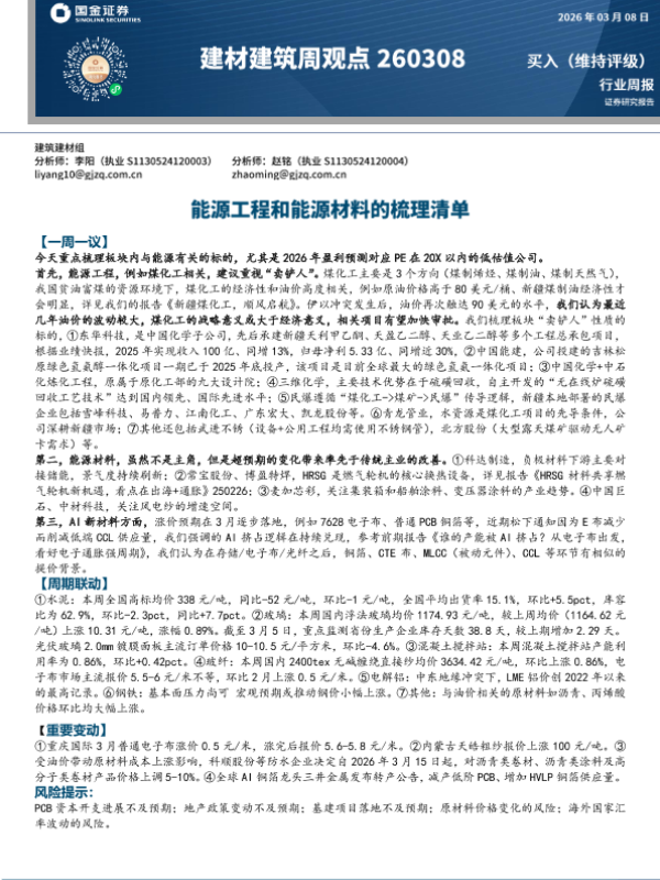 【国金证券】【202603】2026-03-09_国金证券_建材建筑周观点:能源工程和能源材料的梳理清单-18页 证券期货研究报告