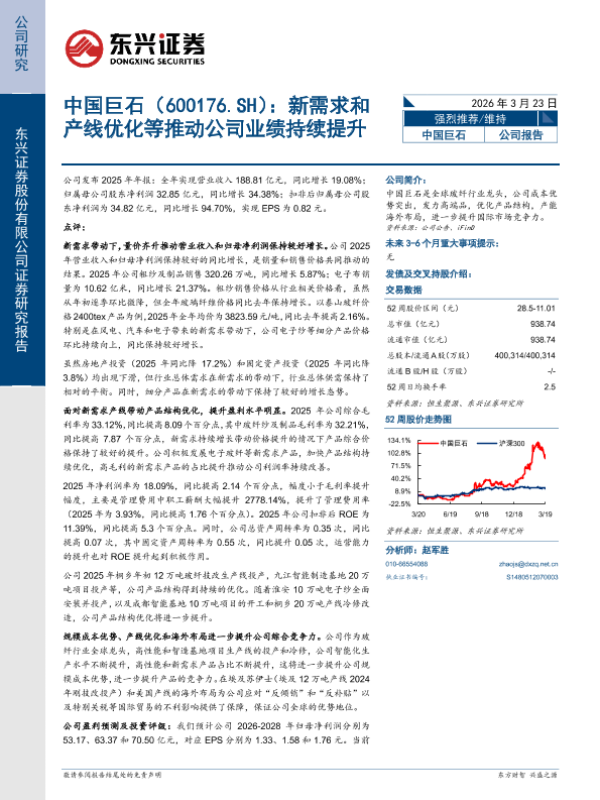 【东兴证券】【202603】中国巨石(600176.SH):新需求和产线优化等推动公司业绩持续提升-6页 证券期货研究报告