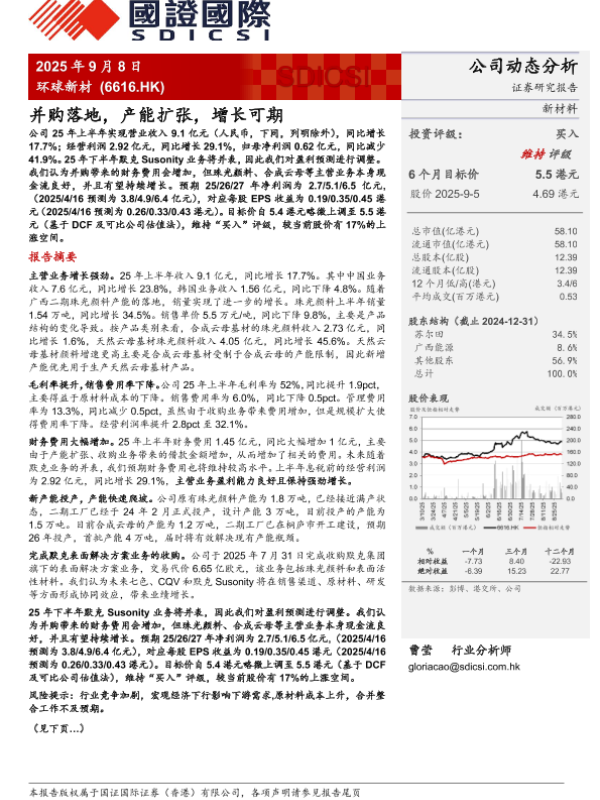 【东吴证券】【20250908】环球新材-并购落地,产能扩张,增长可期-7页 证券期货研究报告