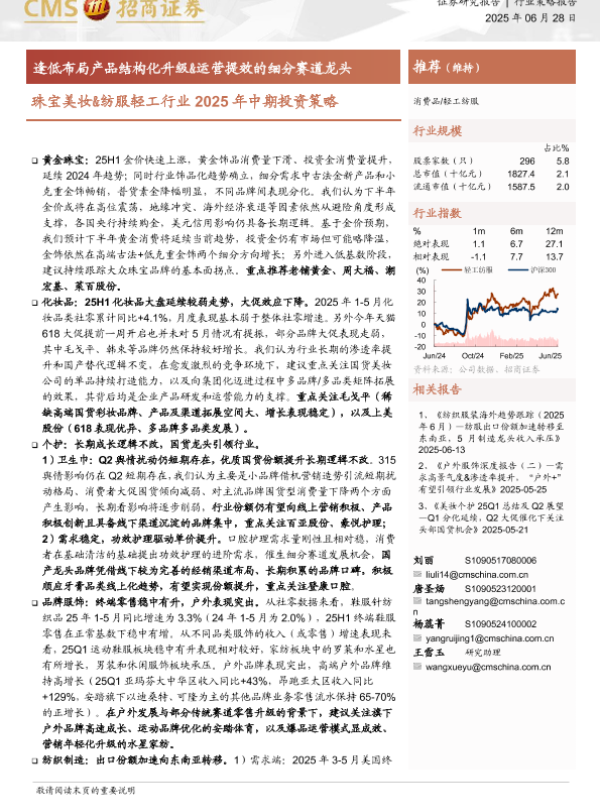 【海通证券】【20250628】珠宝美妆&纺服轻工行业2025年中期投资策略-24页 证券期货研究报告