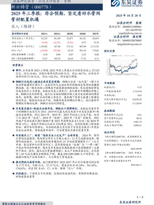 【东吴证券】【202509】新兴铸管(000778)球墨铸铁管龙头迎周期拐点,非美需求与反内卷政策催化 2025年拐点机遇-16页 证券期货研究报告