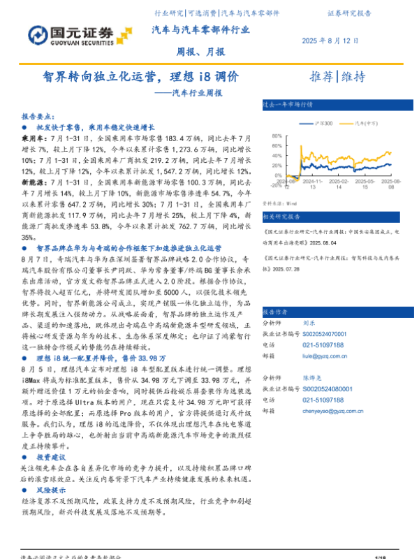 【国元证券】【20250812】智界转向独立化运营,理想i8调价-18页 证券期货研究报告