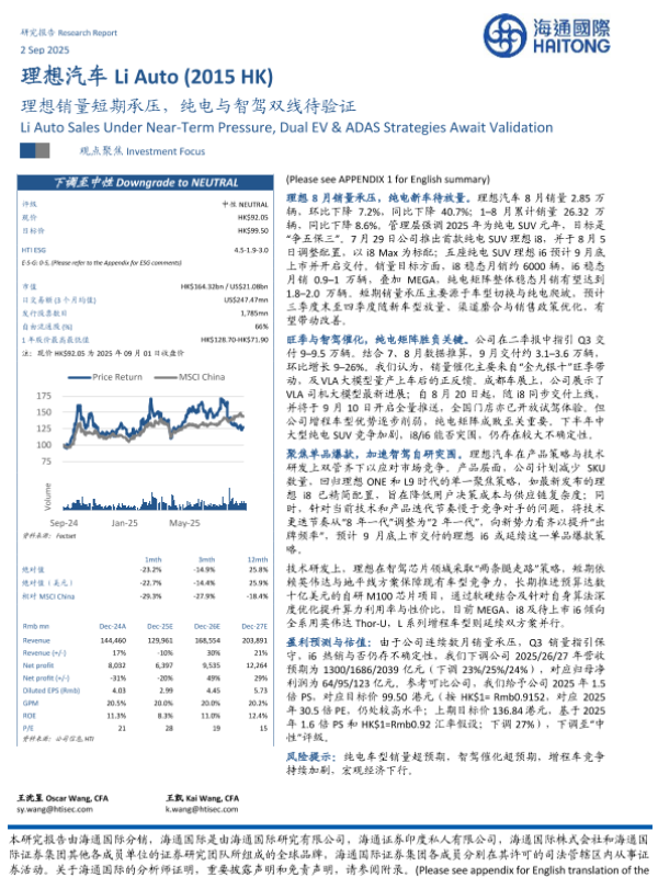 【海通国际】【202509】理想销量短期承压,纯电与智驾双线待验证-12页 证券期货研究报告