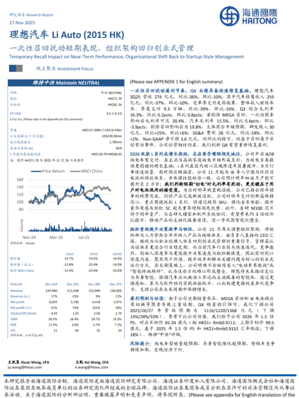 【海通国际】【202511】一次性召回扰动短期表现,组织架构回归创业式管理-13页 证券期货研究报告