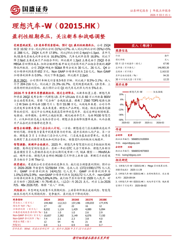 【国盛证券】【202603】盈利性短期承压,关注新车和战略调整-5页 证券期货研究报告