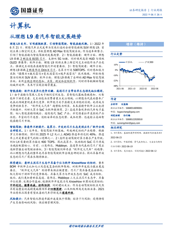 【国盛证券】【20220626】从理想L9看汽车智能发展趋势-18页 行业研究