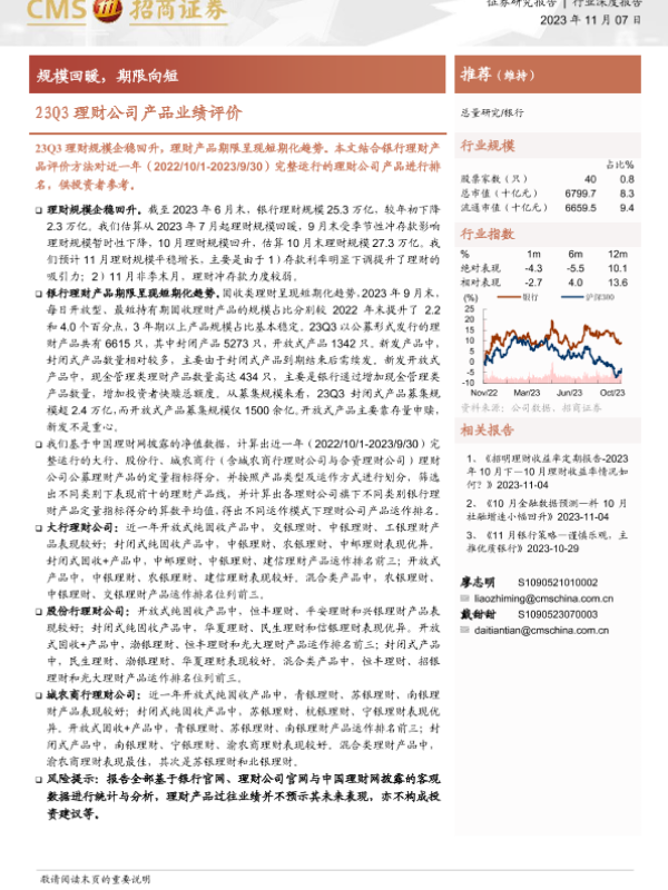 【海通证券】【20231107】23Q3理财公司产品业绩评价:规模回暖,期限向短-23页 行业研究