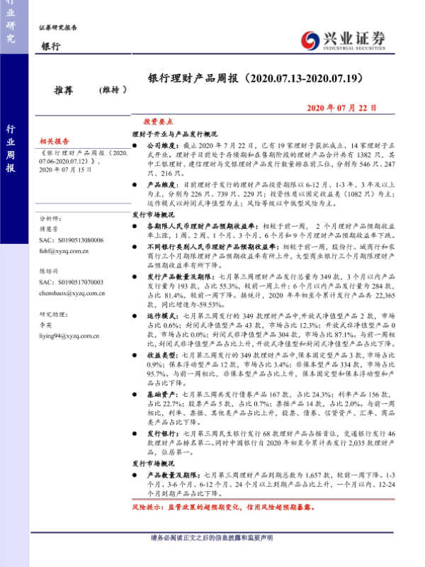 【兴业证券】【20200722】银行理财产品周报-19页 行业研究