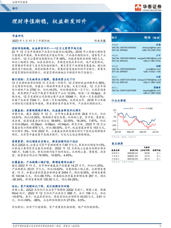 【华泰证券】【20230111】银行业:理财净值渐稳,权益新发回升-30页 行业研究