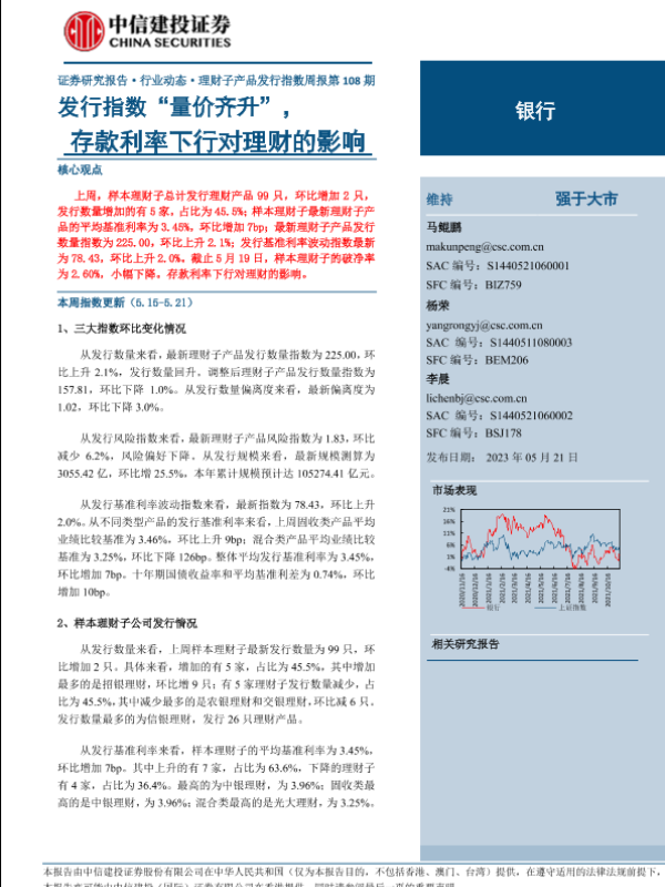 【中信建投证券】【20230521】银行业:发行指数“量价齐升”,存款利率下行对理财的影响-18页 行业研究