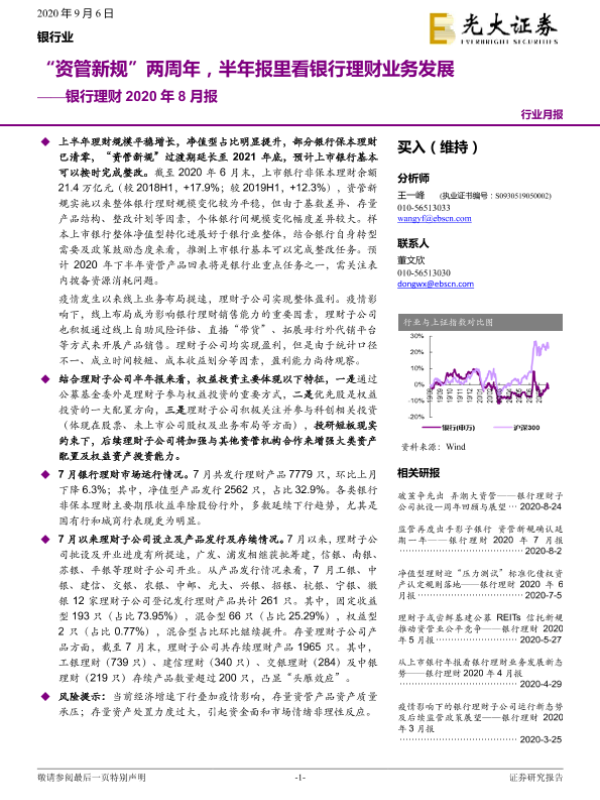 【光大证券】【20200906】“资管新规”两周年,半年报里看银行理财业务发展-29页 行业研究