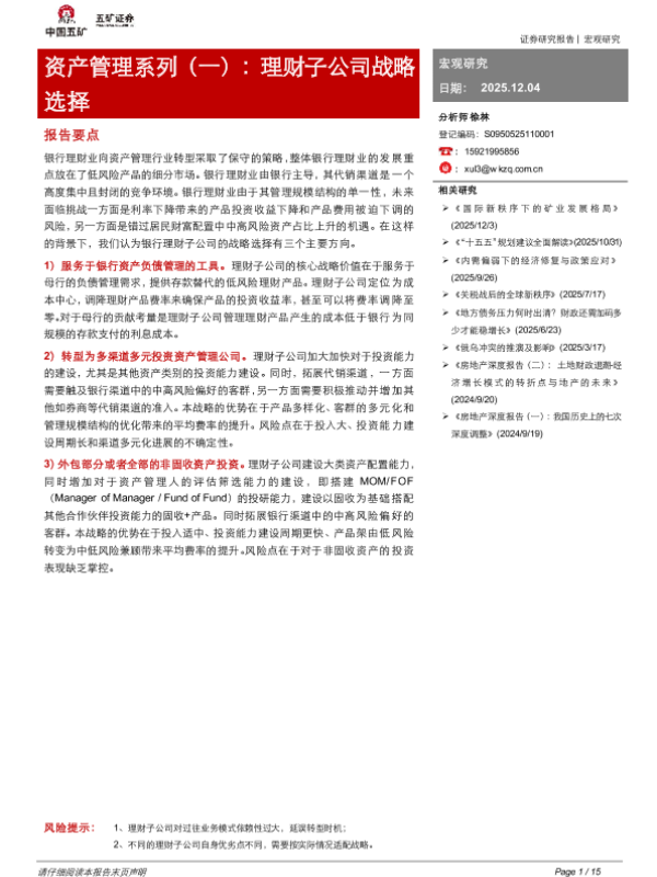 【五矿证券】【202512】资[Table产_Main管]理系列(一):理财子公司战略选择-15页 证券期货研究报告