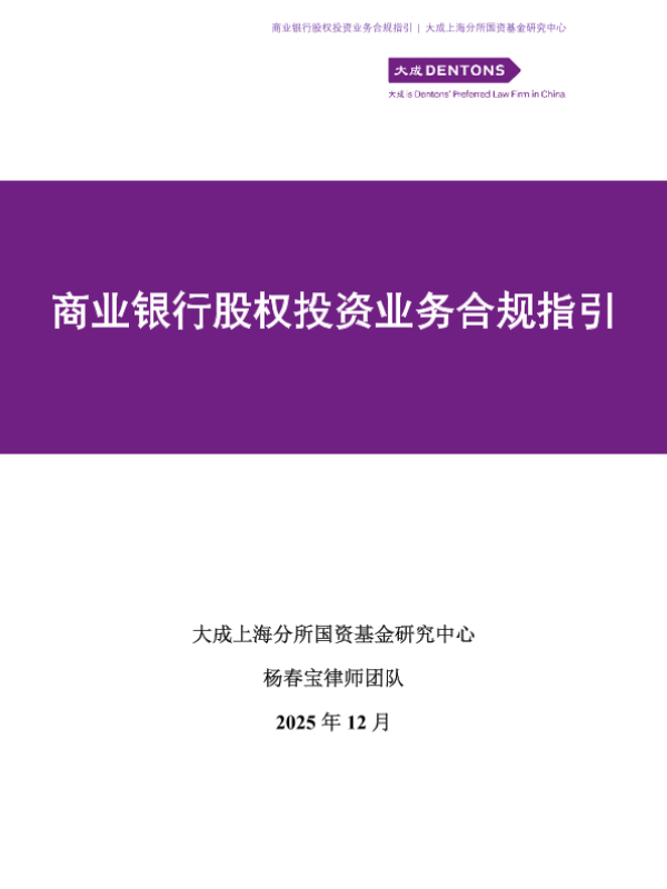 【大成上海分所国资基金研究中心】【202512】商业银行股权投资业务合规指引-167页 指南