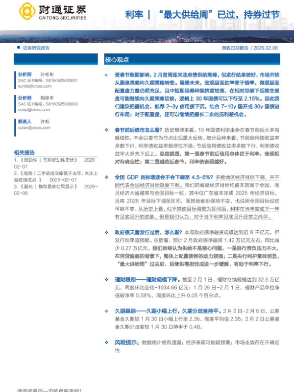 【财通证券】【202602】利率|“最大供给周”已过,持券过节-15页 证券期货研究报告