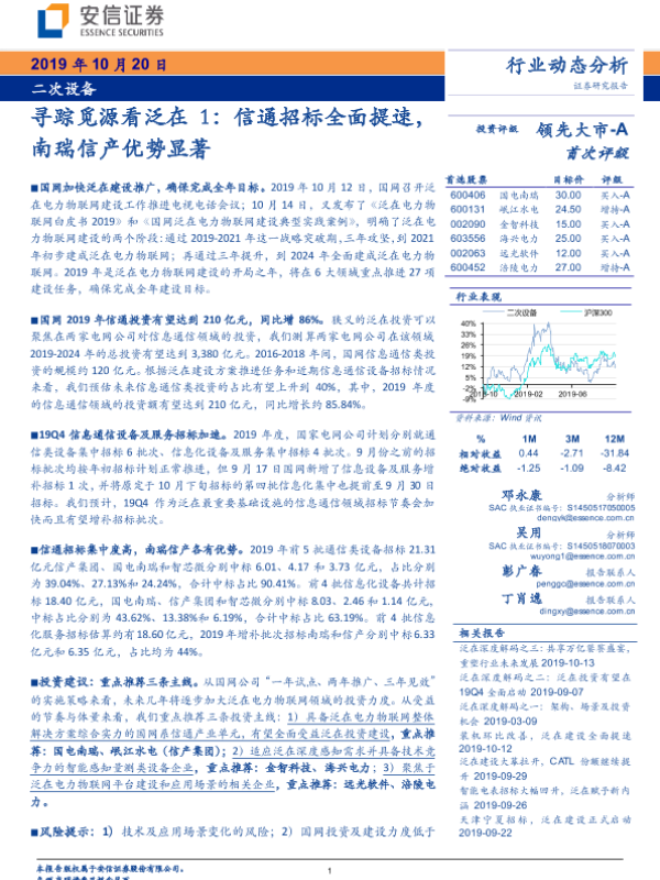 【安信证券】【20191020】寻踪觅源看泛在1:信通招标全面提速,南瑞信产优势显著-11页 行业研究