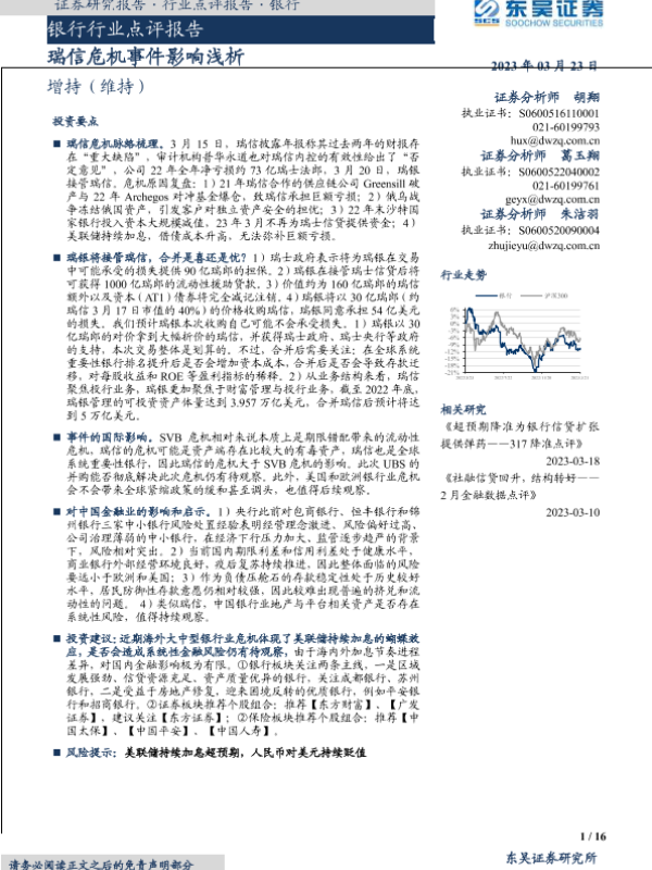 【东吴证券】【20230323】银行行业点评报告:瑞信危机事件影响浅析-16页 行业研究