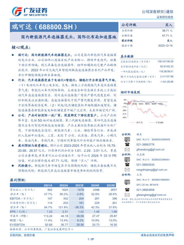 【国信证券】【20211013】瑞可达-688800.SH-连接器优质供应商,通信+新能源车双赛道共振-40页 行业研究
