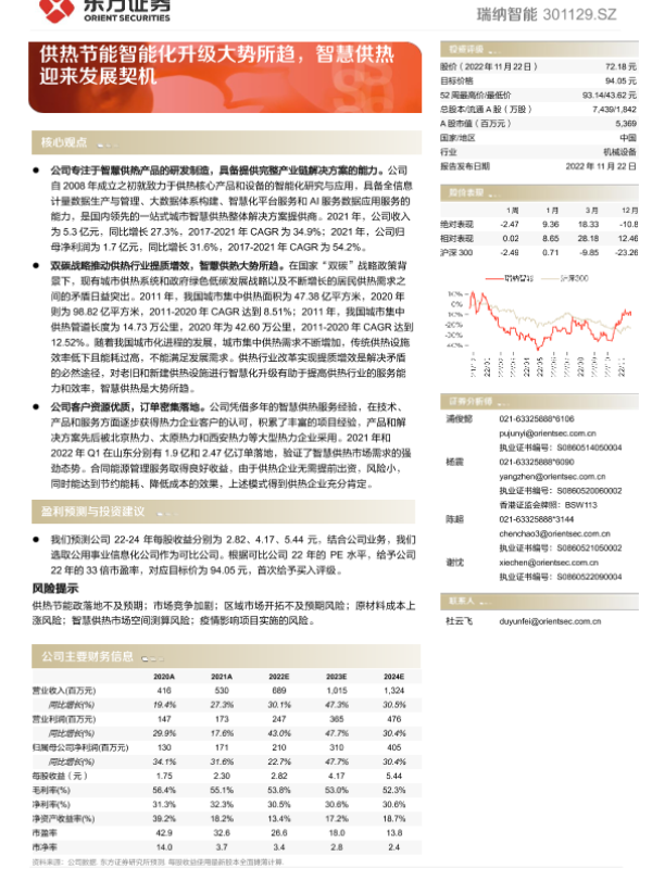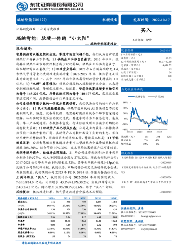 【东方证券】【20221122】瑞纳智能-301129.SZ-供热节能智能化升级大势所趋,智慧供热迎来发展契机-28页 行业研究