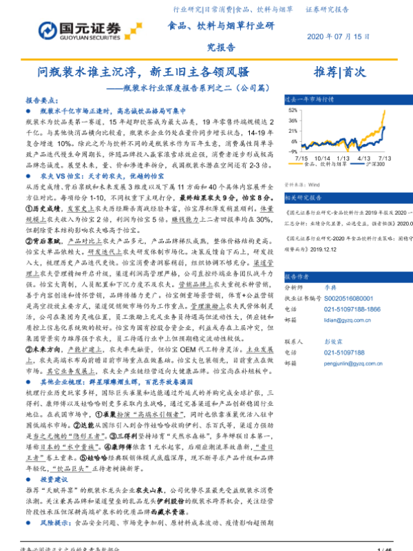 【国元证券】【20200715】2020.07.15-瓶装水行业深度报告系列之二(公司篇):问瓶装水谁主沉浮,新王旧主各领风骚-46页 行业研究