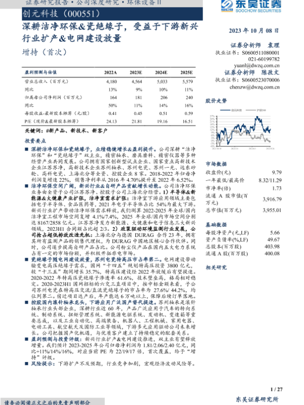 【东吴证券】【20231008】创元科技(000551)深耕洁净环保&瓷绝缘子,受益于下游新兴行业扩产&电网建设放量-27页 行业研究
