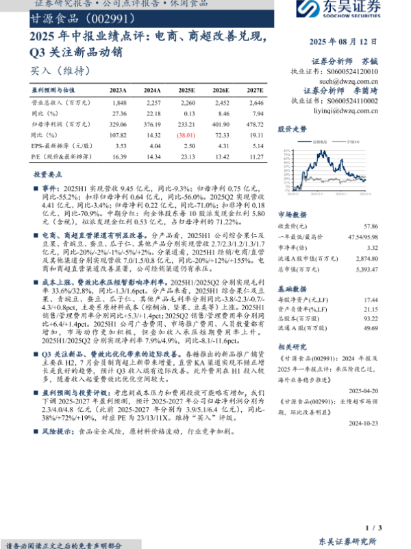 【东兴证券股份有限公司证券研究报告】【20250826】甘源食品(002991.SZ)-不破不立,有望逐季改善-25页 证券期货研究报告
