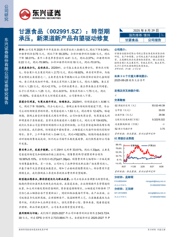 【东兴证券股份有限公司证券研究报告】【20250829】甘源食品-转型期承压,新渠道新产品有望驱动修复-6页 证券期货研究报告