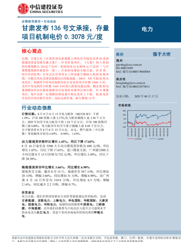 【中信建投证券】【202508】甘肃发布136号文承接,存量项目机制电价0.3078元/度-15页 证券期货研究报告