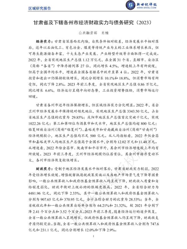 【新世纪评级】【2023】甘肃省及下辖各州市经济财政实力与债务研究(2023)-22页 行业研究