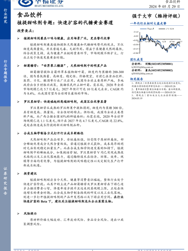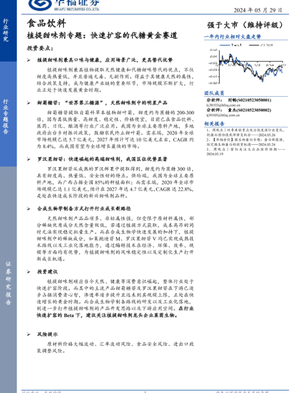 【华福证券】【20240529】食品饮料-植提甜味剂专题:快速扩容的代糖黄金赛道-12页 行业研究