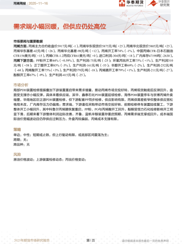 【华泰期货】【202511】丙烯周报-10页 证券期货研究报告