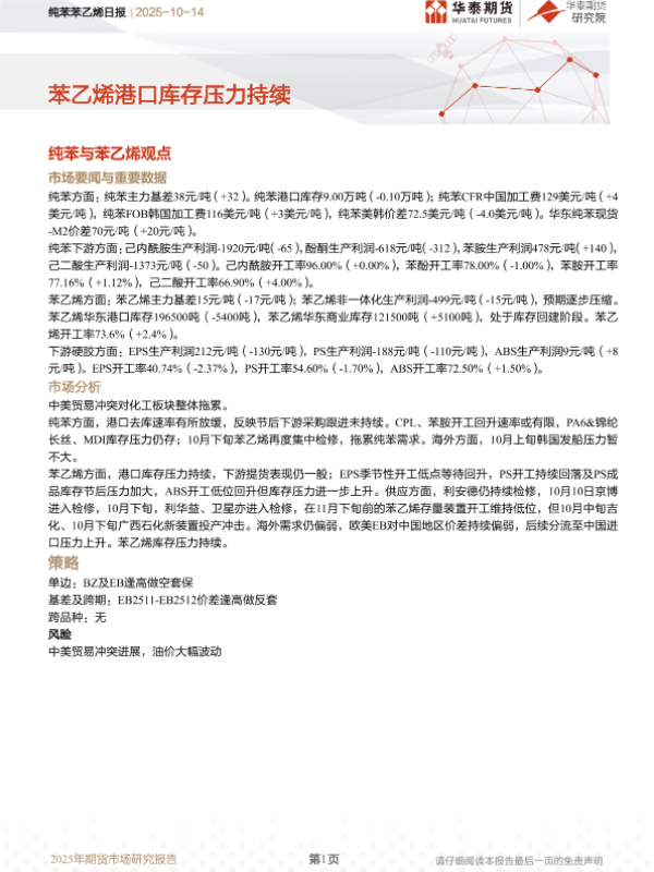 【华泰期货】【202510】纯苯苯乙烯日报 | 2025-10-14-14页 证券期货研究报告
