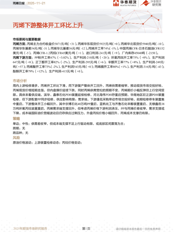 【华泰期货】【202511】丙烯日报-10页 证券期货研究报告