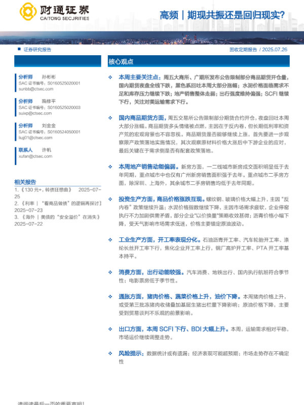 【财通证券】【202507】高频|期现共振还是回归现实?-15页 证券期货研究报告