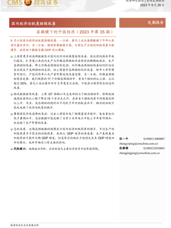【海通证券】【20230925】显微镜下的中国经济(2023年第35期):国内经济活跃度继续改善-39页 宏观策略