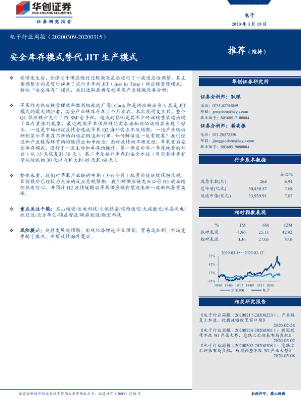 【华创证券】【20200315】20200315-华创证券-电子行业周报:安全库存模式替代JIT生产模式-18页 行业研究