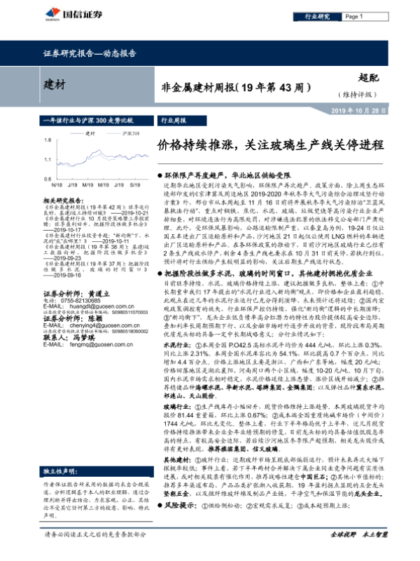 【国信证券】【20191028】非金属建材周报:价格持续推涨,关注玻璃生产线关停进程-17页 行业研究