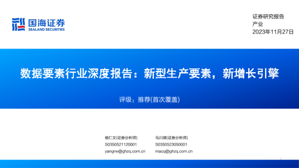 【国海证券】【20231127】数据要素行业深度报告:新型生产要素,新增长引擎-66页 行业研究