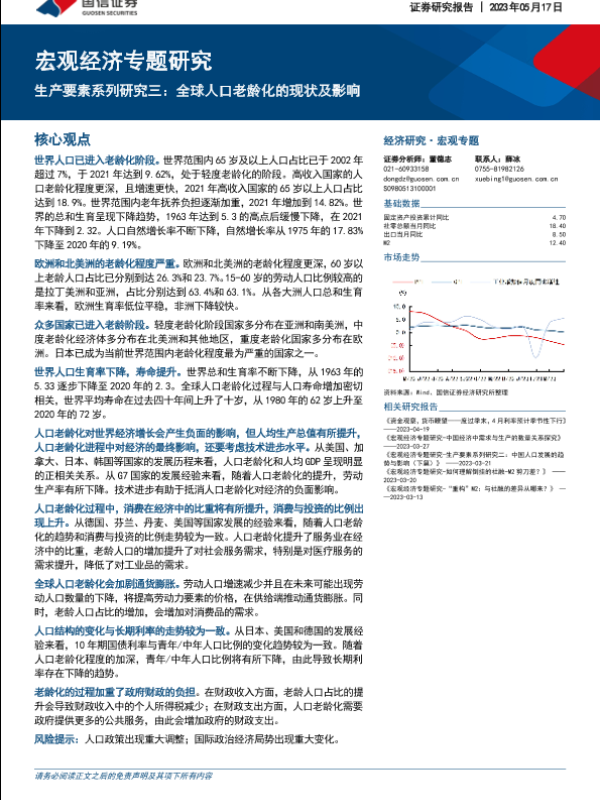 【国信证券】【20230517】宏观经济专题研究:生产要素系列研究三:全球人口老龄化的现状及影响-22页 行业研究
