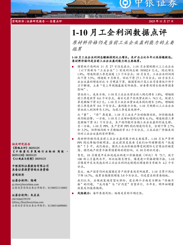 【中银证券】【202511】1-10月工企利润数据点评:原材料价格仍是当前工业企业盈利能力的主要拖累-6页 证券期货研究报告