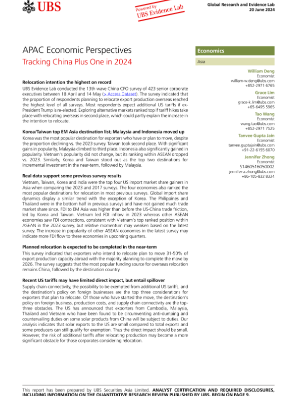 【UBS Securities Asia Limited】【20240620】APAC Economic Perspectives Tracking China Plus One in 2024-12页 行业研究