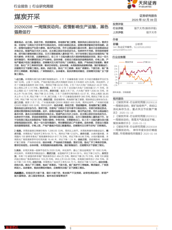 【天风证券】【20200209】20200209-天风证券-一周煤炭动向:疫情影响生产运输,黑色强势运行-19页 行业研究