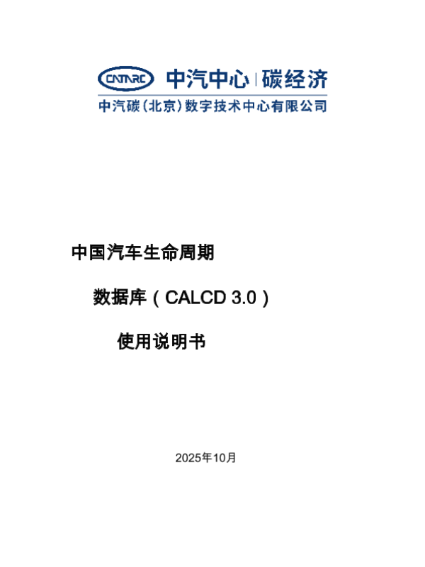 【中汽碳(北京)数字技术中心有限公司&中国汽车技术研究中心有限公司】【202510】中国汽车生命周期数据库(CALCD 3.0)使用说明书-75页 技术文档