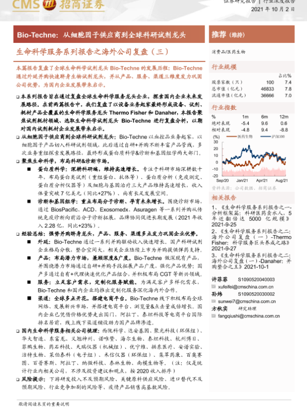 【海通证券】【20211002】生命科学服务系列报告之海外公司复盘(三):Bio-Techne:从细胞因子供应商到全球科研试剂龙头-17页 证券期货研究报告