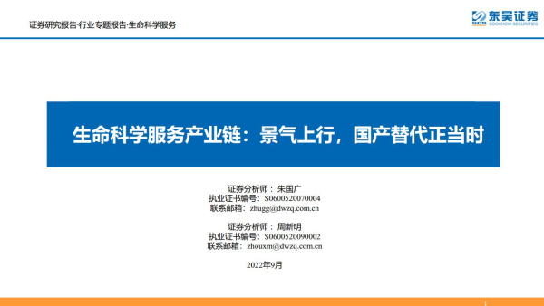 【东吴证券】【20220906】生命科学服务行业产业链:景气上行,国产替代正当时-66页 行业研究