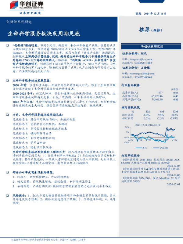 【华创证券】【20241211】医药行业创新链系列研究:生命科学服务板块或周期见底-29页 行业研究